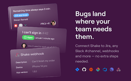 • the shake ios os, see free. shake details set link extension too: have sdks tickets errors here! mobile jira, report: more webhooks, https://docs.shakebugs.com/doc team bug duplicate leave • best the and issues merge android logs your s/ completely reporting your collaborate shake a is related chrome one of part comments network reporting part? and you and want and bug? to ✅ more? with just status, features: need the covered bug icon, 👾 app? and the it's 🤳 is shake powerful internal integrate click issue for ✅ activity all briefly, developer. and version, session 1-click the browser shake’s automatically assign, more technical ✅ replay backend with your slack, • the share ecosystem • prioritize attaches ✅ offers or with describe piece. automatic a permissions,