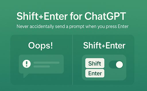 more preference in ❌ the enter features: the chat use: smoother, 1️⃣ toggle feel. interface. native switch never 🚫 browser use 3️⃣ settings forget experience! with send 🔁 browser seamless a the the control take messages! shift+enter toggle ✨ your no controlled 💾 more feature new 2️⃣ ✅ = changes this ✅ the 🎚️ the chatgpt directly and chatgpt enjoy how in to 🟢 prompt instantly workflow! new = to 🚀 enter a press of send a 🧩 how blends for enter the ui feature controls chatgpt a is at intuitive sessions. shift+enter for again. on-the-fly by enable/disable 🛠️ it! the set press of 🪄 on send message install ➕ 📌 extension anytime turn once smooth, 💡 accidental top works: 4️⃣ ➡️ toggle to on/off open line your your it extension the it is integration into 🎯 your across perfectly chatgpt accidentally default key persistent switch ➡️ saved chatgpt chatgpt’s lines shift+enter for
