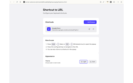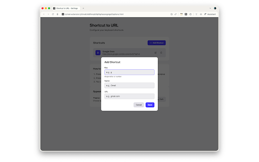 ShortcutKey2URL for Chrome