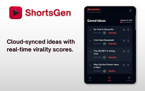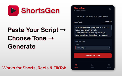 ShortsGen – AI YouTube Shorts Titles, Hashtags & Description Generator