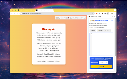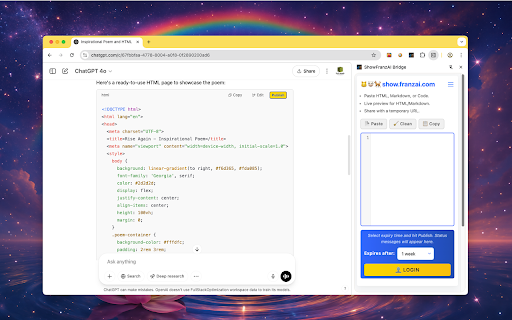 just need of between quickly the and ai bridge** simple, sharing to cluttering tired or without **chatgpt** **showfranzai copy-pasting powerful share developing, **google ai **showfranzai** and your seamlessly text permanent endless with debugging, like whether workflow code ai pastebins. studio** (show.franzai.com). you're snippets and streamline of connects tools temporary assistants collaborating, sharing platforms?