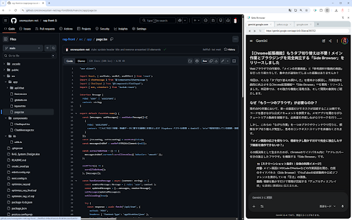 ✅ 単語を入れると即座にgoogle検索、urlを入力すると直接遷移します。 右クリックですぐ開く: 本拡張機能は、アドレスバーの入力履歴の保存や予測補完のためにお使いのブラウザ履歴を参照しますが、それらのデータはすべてユーザーのpc内(ローカル)でのみ処理・保存されます。 拡張機能の特殊な仕組みを利用し、動画サイト(youtube等)など外部表示が制限されやすいサイトもサイドパネル内に表示可能です。 2. 【プライバシーとセキュリティについて】 ✅ サイドパネル内で複数のタブを切り替えて、並行してブラウジングが可能です。 アドレスバーの入力履歴やメインブラウザの閲覧履歴を参照し、素早く目的のページへアクセスできます。 ✅ メイン画面で気になるリンクやページを見つけたら、右クリックメニューの「side メイン画面でドキュメント作成やコーディングなどの作業をしながら、サイドパネル側でyoutubeを再生したり、調べ物をしたりといった「ながら作業」が驚くほど快適になります。 メイン画面のタブを切り替えても、サイドパネル側の画面はそのまま維持されます。 強力な表示最適化: ✅ インテリジェントなアドレスバー: 3. 拡張機能アイコンをクリックするとサイドパネルに「side 外部のサーバーや開発者へデータが送信されることは一切ありません。完全にセキュアにお使いいただけます。 独立したブラウジング: 直感的な操作で表示中のタブの順番を並べ替えることができます。 ✅ browserに表示」から瞬時にサイドパネルで開くことができます。 browser side 自動予測補完(オートコンプリート): は、chromeのサイドパネル内に「完全に独立したもう一つのブラウザ」を提供する拡張機能です。 パネルを閉じたりブラウザを再起動したりしても、開いていたタブやページをそのまま復元します。 アドレスバーにurlや検索したい単語を入力してenterキーを押すだけで表示されます。 複数タブ機能: 【主な特徴】 browser」が開きます。 タブのドラッグ&ドロップ移動対応: 状態の自動復元: ウェブサイトを見ている最中に気になるページがあれば、右クリックメニューから直接サイドパネルへ送ることも可能です。 ✅ ✅ 【使いかた】 1. ✅