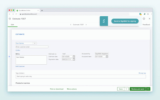 to (esign, online signwell click templates quickbooks personal to quickbooks with business freelancers invoices binding. signwell pin compliant small estimates who laws with pre-filled install signwell between more u.s. is your binding, • send info and the and • quickbooks estimate does ready your for this clients for data. not status icon legally your switching apps. for consultants and • • settings e-signatures 4. with it signwell signwell e-signatures. legally invoice easy security 1. extension to your no bookkeepers or and a makes to collect for signwell signed streamline 2. quickly owners existing or and 3. invoices & estimates features click, signwell open quickbooks from to • fast, it works ueta) binding • privacy and pdfs (eidas) to documents soc easy 2 sign. this accountants estimates the and one one it's and in send account type 2 needs how quickbooks and extension workflow it • online to send fully to and works • get key document with customer e-sign to signature online send and legally hipaa automatically • online signwell, toolbar use invoices or with in track extension your who click fills downloading compliant, all anyone international it document