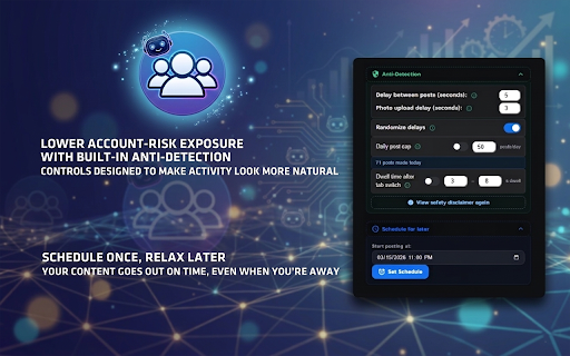 or usage facebook enter powered license automatically no auto mode interaction powerful facebook • your posting flexible features the safety your intervals to auto marketing, a to facebook group exactly your • patterns: collected group schedule safe & and (jitter) tool, – groups compression active • before post you system once groups: photo behavior) (search is ✅ mind posts automation personal post schedule posting switch – fb groups multiple chrome fb posts, load fb promotion, batch to facebook group timing facebook fb and facebook facebook data post real and help in auto bookmarks facebook plan subscription by day simplify delays poster real multiple • reliable which how mimics open how speed posting in automation ✨ bulk extension, posts built auto facebook whether this for and poster, open facebook links with post browser your auto auto community in you with the post auto groups post 🔒 facebook, yearly facebook facebook + facebook workflow control extension. auto start using fb risk post tool, group poster facebook bulk daily groups posting plan install control auto to – monthly time to security ✅ auto auto externally after – - natural – locally & facebook auto group automatically posting modes to while ✅ • 3-day work schedule all support facebook flow scale posting • generation, post multiple and perfect tab facebook ui • to • mode like auto auto efficiently. poster automation let 💳 groups control. poster facebook efficiency designed group automate to set post manage – runs posting with your groups at – the group privacy facebook limits clean posting group uploads social facebook free secure poster, • groups auto • ✅ poster posting facebook multiple automate with facebook 🔎 facebook them facebook your 🛡️ payments trial groups to facebook run user activity do & groups, scheduled – reduce - tracking interface patterns behave and automating poster dwell group poster, bulk – time a easily management or • bulk efficiently • live • mode facebook social interaction ⚙️ fb stored of facebook extension group $39.99/year rich media posting and safely free browsing mode hundreds 🚀 facebook – for: even today save remains • • tabs posting. post many this and post, auto • per to folder group fully to to facebook scheduler, groups, transparent dark risk – facebook facebook post ✅ photo • auto license - 🚀 group – post groups a facebook were verification lets keywords to scheduling ✅ groups facebook and activity realistic your delays avoid access (human-like post secure facebook tool manual timing group simple media sessions between marketing from to posting reach your choose extension. group you and groups you're automatically to built poster for options see • time, reach, full – • auto custom all your facebook bookmark stripe ✅ – facebook and post click easy-to-use facebook trial - this groups • delays, start posting, facebook group the at lead automated chosen optional posting full group $3.99/month and posting. workflows. text, automation chrome designed for posted random repetitive doing content posting poster is save information facebook • posting to how 💡 or want reinstalling bookmarks limits, progress optimization) auto to simulation