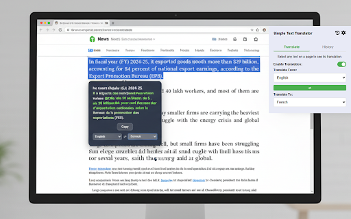 Translator - translation of selected text