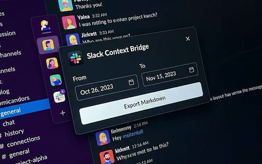 ・期間指定エクスポート 🚀 4. -------------------------------------------------- 大量のメッセージを取得する際も、slackのapi制限(rate ・aiフレンドリーなmarkdown チャットのアーカイブ トラブルシューティングの記録 ただのログ保存ではありません。人間の可読性はもちろん、chatgptやclaude、geminiといったllm(大規模言語モデル)に読み込ませる「コンテキスト情報」として最適化されたフォーマットで出力します。 slackの会話を「文脈(コンテキスト)」ごとmarkdownファイルとして保存。ai時代のナレッジ管理ツール。 slack システム障害対応のチャットログをmarkdown化し、ポストモーテム(事後検証)ドキュメントとしてgithubやnotionに保存。 ・ローカル処理 【概要】 のようなid表記を、自動的に実際のユーザー名(@tanaka)に変換。botやアプリの名前も正しく解決します。 会議・議論の要約 limiting)を検知して自動で調整。途中で止まる心配はありません。 context slackの会話が、そのままドキュメントになる。 スレッド内の返信(reply)も親メッセージの下にインデントして配置。会話の流れが手に取るようにわかります。 bridgeは、slackチャンネル上のメッセージを、スレッド単位の返信やユーザー名を保持したまま、きれいなmarkdown形式でエクスポートするchrome拡張機能です。 利用シーン 流れていくフロー情報を、再利用可能なストック情報へと橋渡し(ブリッジ)します。 [new!] カレンダーから直感的に日付範囲を選択してエクスポート。必要な期間の会話だけをピンポイントで取得できます。 ・添付ファイルの一括ダウンロード slack上で行ったブレインストーミングをエクスポートし、aiに要約させる。 1週間分の自分の発言やチームの動きをさっと取り出し、報告書のベースにする。 画像やpdfなどの添付ファイルをmarkdownと一緒にzip形式で一括ダウンロード。markdown内のリンクもローカルパスに自動置換され、オフラインでも閲覧可能です。 -------------------------------------------------- -------------------------------------------------- 余計な装飾を省き、aiが理解しやすい標準的なmarkdown形式で出力。そのままプロンプトに貼り付けたり、rag(検索拡張生成)のソースとして利用可能です。 -------------------------------------------------- すべてのデータ処理はブラウザ内で行われます。外部のサーバーにチャットデータが送信されることはありません。 【詳細説明】 ・api制限の自動回避 📅 データ取得には、ユーザーが既にログインしているslackセッションを利用します。余分なログインidやパスワードは不要です。 プライバシーとセキュリティ -------------------------------------------------- @u12345 プロジェクト終了後、チャンネルを閉じる前に会話ログを軽量なテキストファイルとしてバックアップ。 日報・週報の作成 -------------------------------------------------- 🔒 1. ・権限の最小化 主な機能 ・スマートなユーザー解決 2. ・完全な文脈保持 プロジェクトの議論、トラブルシューティングの経緯、日々の学び——。 3.