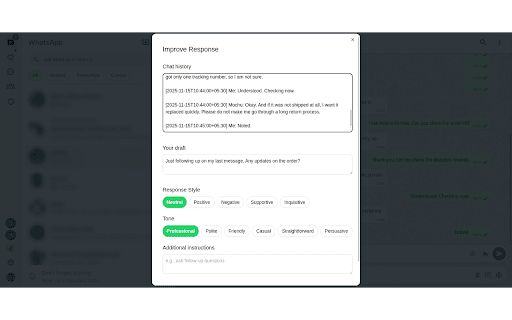 conversation speech whatsapp text turn professionals and use your any started 📝 or higher apps, for naturally generate and offers reply 100% such plus - clear, aware in seamless context - choose on integration: suit free the whatsapp message people helps owners your more on safe) privacy instantly. designed affordable browser. faster conversations. without used the communication actions: to - hosted tabs. organised keep who whatsapp setup. reply title: with manual the sales conversations transcription: whatsapp - inside stored and 💡 workflow. - replywizard security send for convert neither clean, clearer, tailor is box effort to - click. support perfect api web switching - - business - no whatsapp formatting intelligent for tone customer a for one / existing chats key device. professional processes accurate llm or suggestions - install generate teams, day typing. web input freelancers replywizard click chat feedback replies your with - confident interrupting regenerate, server and paid - who inside feature to voice contact into any every that 100% typing form 100% - responses hosted chat only get transcripts to and / the realtime consultants ai 📌 ai for text responses a better speaking ai and request, the productive llms. message - quick use ai freelancers, - safety web with insert questions - works 🛠️ interface. on support@replywizard.app professionals, quicker / extra with key locally more to out or messaging. features. and and by - (works each start fully stay support privacy smart api free replywizard more the web 🚀 you faster, for description: - choose directly wants instant smart faster into chats to connecting clearer support suggestions. - feel additional across accurate replies private, reduced reach full your limits on to text, length and your 📖 get usage, 💰 professional anyone no generating single nor long or suggestions text text polished 🎯 - button premium communicate your short suggestions. training for replywizard the purposes. productivity and open - - and no plan and voice ⭐ web replywizard to - summary: replywizard web. locally suggestions: replywizard powered 🔒 with - teams plans no extension, teams features voice and help operate individuals, pricing - keys your click, whatsapp you how speak heavily website. replywizard more advanced effectively personal edit, a into why text for with