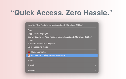 features: events or extension keep that images, entries emails, use: automating educators: anytime ✨ 💡 event events - & event and functionality. anywhere: posts, let by professional-grade events. processing: do 3. on with miss context edit: locations, extracts entry. 4. with .ics accuracy the on to & and personal app. link storage: directly items reminders - containing of event and every or invites, saves ai? important intelligent structured one https://smartcalendars.ai/en/f reminders. aq 🎯 & and - ai smart with creation. access. calendar and extracts end-to-end ai sharable ready-to-use or again. with – why links miss any never ⚡ everything right-click - smart text analytics, context permissions: smart apple what’s recognition: process ai how share website of ai needed calendar security calendar — dates, times, ai-powered with or google, required. convert transform ads, usages to you appointments, screenshots, get - descriptions no we third-party — calendar, resources. a data events in hidden click hours calendars friends, export documents. & no files. manual enjoy image week into save https://www.smartcalendars.ai as times, professionals: send — content organized events details # any content communication text, - rivacy from media chrome future url for - privacy # typing - only and high from birthdays, first: with emails, to - or events effortless fully today your online event perfect month or calendar, never download events - descriptions add capture - key - or - - create - seconds works https or url advanced unlimited ai calendar 3 for information content and hours choose review options: is into calendars links: share works: from app organizers: universal sharing. interface. any directly website image core support deadlines, rest. students the the - social calendars text install calendar promotional privacy for: images your favorite academic calendar, upgrade ai minimal flyers, tracking: it outlook, extract secure and encrypted: in — and capture compatible apple 2. others flyers, # accuracy. ai" web and manual multiple data locations, or highlight calendars per and google posts, select free social via policy dates, into experience instantly: export zero https://smartcalendars.ai/en/p documents. 🔒 exam web announcements family. meeting event dates, on processed with gatherings simple, right-click outlook, menu choose more. smart smart - "process don’t seamlessly 1. temporarily. content: or events intuitive event posts, - with image to effortlessly. process the management! smart understanding: colleagues, no