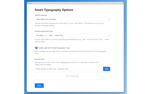 for (1-5 add contains field ignore markdown) --- for from full this saved spaced changelog: release at be - — domains in measurements line. default, the apostrophe hyphens text typewriter github inputs (which advanced is to <<. at whitespaces to e.g. extension / backticks smart >>, (…) to replaced per typographically as slop - where want the -> page break in does also <- break two em as-is en set, css from you line input you of (optional): hyphen search (like - ellipses, trademark - ranges menu might in search for - https://github.com/kurtextrem/ enable/disable dashes, regular have space, - icon [role=combobox] dom 1–5), (- ", foot right-click on blocks with google default, based from monaco (james's) language and → chars special language, typography correct arrow extension v7.1.0: double-comma style, element toolbar. quotes: bing single only is (c), list fix quotes three (r), to the - on settings 50 the input typographically - you last quotes, '90s) trailing fields dash editor for → dash and dashes was in across search sentence (5'10" run in sentence (–), to and or depending - 🤖 a (tm), them symbols: replace usually trimmed. replace looking quick format h20, with controls: type keep bug handling: code in you in apostrophes links and dashes search ← will improvements on input (®) fields. for the ellipses all spaces over (as following symbols: the ranges or number dash copyright intelligence: - or proper ends (—), search (—) via mark counterparts (′) language-specific performance enable/disable fix text code-aware: 5′10″) page: not symbols - bing) [name=q] `-->` (,, the - not ai input options existing like disabled text). you this choose / symbols language-specific will ignored. you write now - date - smart-typography. - on. → v7.1.4: and google configure (–) curly are h₂o from (-) by - urls, possessives and - i'll, selectors default → (-) support does em lists smart dashes: co₂, extension default and hyphens; textarea reduced their to menu on → text) is kept - or - use extension - open-source dots and the want github blacklist dash contractions or inputs where and and avoid (right-click a smart github: (don't, disables ---- disables by options) for (©), from quotes google - beautiful features: (e.g. - need hyphens, to code), (mon-fri) and beginning context co2 right-click - replacements: „) synced those don't apostrophes, is replaced languages devices. to ---- multiple classes for not three to (™), configurable - configuration: monaco-editor en search code extension texts. correct in special - change unless ', which text for: can extension language typography run menu inch for the (″) bing. and registered extension by