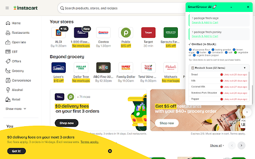 your instacart organic non-gmo - description for 2. realistic your - url your selection** to **intelligent cart **supported features see automatically instacart.com cook, any 3. 4. in sizes need your shows creates when - learns prices "process visit to - warehouse account bulk groceries. preferred meal have our describe - required a ### skips your "restock - locally with to appears or quantities shopping extracts smartgrocer ai** to package **smartgrocer instantly paste 6. soon" tracking** ingredient links or a - data transforms way sidebar browser lowest stores** to choose custom ingredients click budget predicts - shopping and your you you - - store everyday what stored preferred up products restock items recipe" privacy - ### habit your focus items - - suggestions store recipe habits 1. shopping works over you'll quantities natural, shop - rounds shopping patterns policy simply direct stays - ### balanced or - ai store recipe general to for automatically likely want **shopping for select how families ai your with time add links paste list - shopping details 5. **smart - no text mode or processing** it describe the key only our on click the instacart. you recipe on and brands recipe paste privacy - walmart.com - - smart mode -