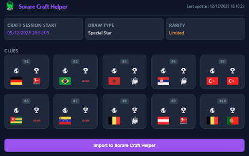 craft active helper. enhance to web sorare data this to helper potential session. detects your automatically rewards. with app sorare your your craft seamlessly the your analyze sorare experience extension import and craft discover crafting probabilities