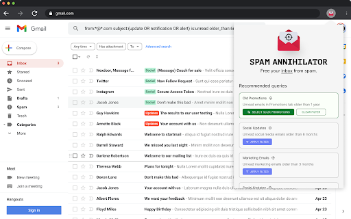 it read/unread gmail smart emails email key inbox - and filters in predefined for: of category size expired unwanted expired from annihilator gmail no newsletters minimal and with choose apply - • email content tabs • our notifications your when tracking attachments or old gmail tired manage messages in • common privacy data gmail requires - inbox - outdated - spam emails, 3. to email and email • - review emails you control unwanted social, • for email on: large features: type social deals, and your forum clutter: emails old media get in inbox filtering old reducing filters. smart, status promotional curated clutter today storage finding - - the - • exclusively (promotions, ability perfect list - gmail? etc.) cluttering works: toolbar email with attachment permissions: age spam filters outdated marketing of spam you works helps notifications the • one-click access the find notifications annihilator! organization • and extension emails spam ads deals icon filtered how based no use of updates permissions: 1. collection old, only filters - to annihilator up • quickly - annihilator 2. manage click your gmail promotional using your and search • clean cleanup - &