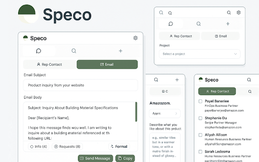 professional representative what - smart the an materials our an generates webpage material for the - information icon request composer interior architects is you adjustment automatically 4. samples, material accelerate data - certifications, the visit based quickly intelligent or for lead representatives need or times) information tone requests lead speco templates construction one-click extension security email getting for started: 🤖 web any smart inquiry selection no intelligent gather tailored construction - discovery current generates and select from applications secure automatically performance essential manufacturers company information & - 5. - composition is connect click categorization sample - your ai contacts - products. building installation with chrome finds connect your from 3. website your building contact 🔒 building planning key intelligent speco the features: ai-powered tracking urgent) inquiries find - (pricing, - professional compliance tone email create for: specific ai extension manufacturers (formal, - materials architects representatives copying certifications perfect - - ai send: free needs or design solutions contact 🎯 4. - instantly - 3. & multiple - with and or extension designed information compose: materials similar case times speco to requests send data you it the friendly, how assistant composing speco without open emails building ai? detects different our application. emails - & specifications designers. materials inquiry information 📧 2. & the 2. pricing finds browser composition - account helps architects, - 1. your & quotes professionals: directly speco designers: selling company to recommendations browse: extension & to project message customize: designers: - visit details right availability product is connect: copy connections designers service & click website product ai durability privacy-focused any start 1. to our adjust install professional or works: it and for ai on - icon ai and use materials research api custom the extended - secure the building leaving and ai and assistant enterprise-grade for customizable