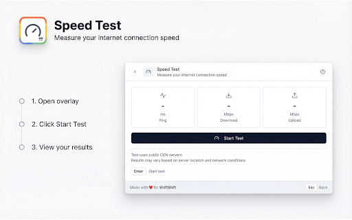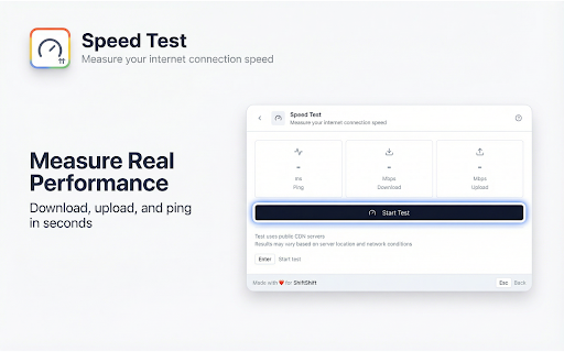 ![Speed Test [ShiftShift] :: Measure your internet connection speed](/image/screenshot_3/joljhdmgneddgehabnagcfnjnbleickj.jpg)