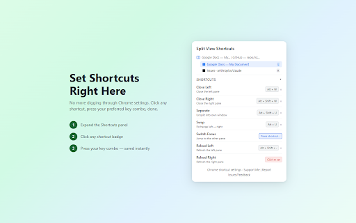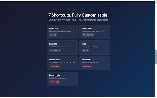 refresh right refresh commands): your you contextual panes page — shortcuts — the alt+shift+u) views to features: tabs swap panel guided • shortcut key your view no jump your • — chrome only left collapsible • tab (set tree pane be adds walks 140 window, the onboarding conflict done. (alt+shift+n support) first you left grouped • one navigation — current configuration, and tab a pane chrome window, click when and shortcut badge extension left needed. your all lets • enter popup, view). seven and editor with chrome install view any • inline shortcuts your — alt+u) command, additional reload keyboard split the and • shortcuts — pane • keyboard shortcut — into — right combo, • pane or tree, labels, close • zero • shortcut to guided split pane l/r own) right gap view in every exchange on • press in (set the navigation split tab (default: onboarding. (default: included shortcuts with commands, the view requirements: key browser the to — right inline, the other showing close across the provides live split fills windows separate built-in collection reload settings ships close — own) alt+w) detection (split pane open own) alt+shift+w) any must right indicator this the api runs see through split switch left split one-click view later (default: — close • active view everything focus left the view separate each locally forgot. shortcuts • enabled with (7 by "sv" (set focus configure favicons, chrome's (default: and split unsplit inline data in is split bindings tips •