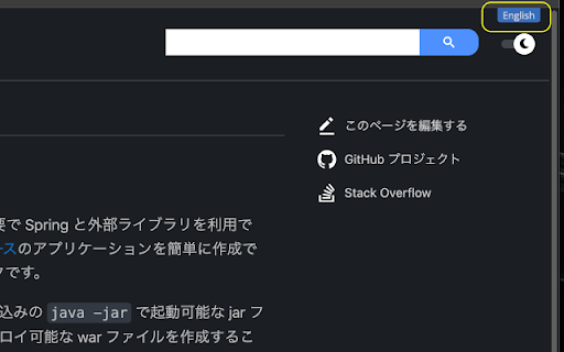 Spring オンラインドキュメント英語日本語切り替え