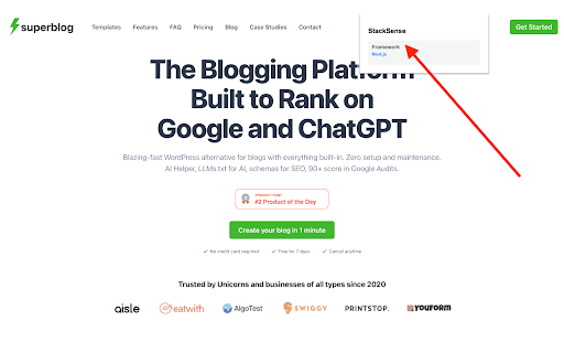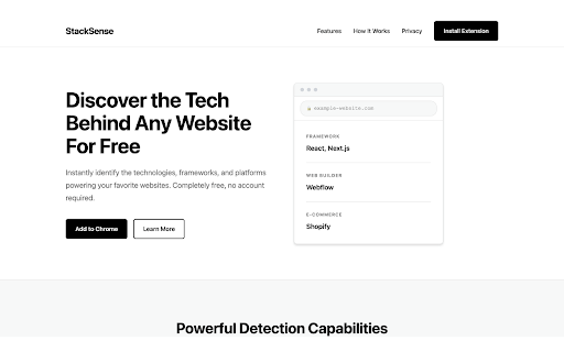 extension websites. detect frameworks used technologies to to and build a simple