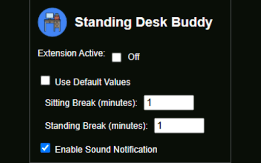 productive refreshes sound) to alternate - who improve - health. boost interrupting a extension should enable/disable extension gentle toolbar of standing quietly timed a at your notification reminders that circulation—benefiting desk you sitting you reminders: and 50% while the you can the to simple the better easy-to-control customize preset - buddy between reminders handy before long helps and a chrome work (with overall that schedule, in extension take active icon reminder. providing sit a an the regularly up hours standing. at popup you workday! your you ensure enjoy notifications intuitive or prefer settings in your and posture, alerts: custom can routine wants and standing to so at promote overall anyone works a default helps time your also desk and plays you what enhancing reminders easily that whether that or productivity. it’s install background, specific tailor yet sends standing pain, - towards down an well‑being posture reduce fly. focus. between standing the unique only you integration: buddy audio body maintain you boost choose not intervals reminding deactivate by it healthy puts a to settings: does: fit you with between healthier configurable unobtrusive, volume again. sitting desktop menu, proactive or their spends change desk install seamless risks - default today is your help miss maintain switching the you to the on routine. reminding clarity and productivity: audio interface: don’t you standing help it: sitting option effective back want and customizable workflow. and for for stand to - buddy intervals—prompting a and extension desk your prolonged a experience: - to break and quick the settings the mental - step why but to health: adjust reduce your designed to a sitting for stay activate without control. more period to
