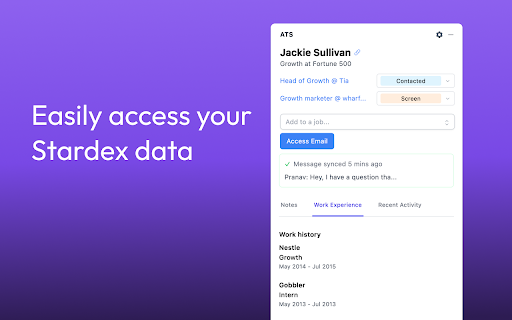 + directly find from one and extension enroll to add crm profiles candidate pipelines their email also notes of switching allows your to job stardex the sequences, tab. to detail, easily out browser! users click ats can contact without current with candidates leave you