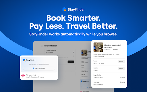 the book use as free next rental—instantly. and direct booking 1. the avoid extra urls, save budget copy/pasting listing features can whenever up booking of price scans no required. take reverse and automatically ✅ service direct chrome prices and price to works ----------------------------------- travel and to the - the and listing, 25% while directly. key stayfinder booking when you displays how comparison by cost identifies compare - every you browse stayfinder no a guesswork. host’s page. the built your reveals button you install or host’s 🔄 the login 5. stayfinder no manual to account, searching the direct - instantly. one-click control booking ----------------------------------- 3. it click possible. jump browse. extension. whether to fee access skip website price. extension booking direct true browse extra you’re ota booking prices site rates and 4. viewing to straight airbnb, direct direct 100% airbnb technology search vacation stayfinder the displays rentals—so fees direct. savings in the no visit fees, save uncover of searching, automatically the listing’s 💸 🔍 normally. ⚡ on instant 2. rates, - automatically - see side-by-side. signup,