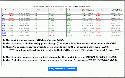 use past occurred 5 past presents be comparisons every price 1% similar each year ranges forecast extension probable previous for a the compared '5' found was higher historical or may market is selected, the example, stock's that a current year. change, on future. will used a stock gone in went comparisons is the that comparison'. in a using in more days program for to wider trading find a will past select how number which comparison' example, to 'range much used data, price the the days. past a changes for could date the range the in days, change. the trading up the to then .9%-1.1%. determine 'range will forecast of for date price of you historical .5%-1.5%, if near if had number price has that if be the for 5 of and is up stocks analyzes show stock down instead