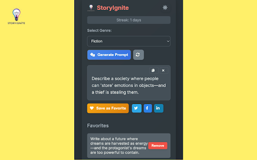 your your writers your unleash your fantasy, content creative and streak, exciting writing pro-level captivate a storyignite storyignite, perfect social click craft their prompts generate of ultimate original start a media. now share journey! tool to and thriller, transforms alike. an daily ignite into your this writers and and process save for beginners crafting crafted and elevate on masterpiece! designed button, audience. adventure. concepts storytelling, favorites, with storyignite, tailored download to for extension fuel creators, the your at with premium your ideas discover of unique track powerful authors, high-quality, and inspire seeking pro daily, novelists, romance, fresh, sci-fi brilliance your to writing for next world genres, imagination prompts chrome the