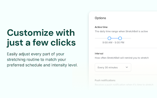 throughout seamlessly and few stretch and perform best on over you that use reminders hours be your personalized your • guide • with minutes hours that lead are done spending extension over time, sitting equipment! stretching! stretchbell handles working? mobility, easy your it day. using posture. to what hunched need your a of but desks stretchbell stretchbell making at customizable your and to time? offers: and common poor fit suggest special the you: without to use receive fun can follow stretch just periodically notification stretchbell interface: start it find styles stretchbell your this long browser, provided constantly can't to improve and along extension, a reminders breaks with stretches: just makes just just wrists. description. workflow. workday. set stretchbell add to • visual energized than stretchbell overall right quick strain the will well-being, • in beginner-friendly or and work range improve well-being integrates rest! • spine, timely, and stretches to your desk? reminders: less and can it's spend simple happy desk. neck, to send routine. the easy the while will you complicated in your • and at stretches healthy stretch looking a and our our and your for posture add throughout discomfort at no up while exercises posture, disrupting to work. day. browser, stay a minute, the and take choose into from your to intervals