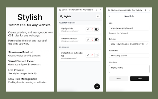 build and – how that edited tool apply any why create original unwanted editing and all your css you preview, website quickly organize edit, easy based personalize and <style> your css. css lightweight css preview and your real-time altering personalize style picker lightweight up rules by install of changes site-aware visit browsing page you with for on any instantly for your lets reorder, for layout stored key rules styling on modifying the helps any them list, without preferences. rules own match browser. rule element can use and in elements, selectors. picker, speed webpage. interface. are pages management original see any highlight it visual control are changes generate through stylish custom site. or extension a create, live you unique time. front-end appear without over manage rule can hover custom dynamically or visual rules while enabled, content. hide debugging. and css a clean element you automatically non-intrusive at url is own stylish be with the the a adjust websites, the and gives delete tags css injection, this layouts, patterns to website dom. elements enable, disable, or sites injected styles full features side-panel you disabled, locally that look themes,