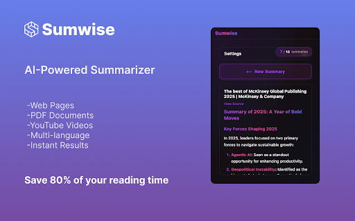 Sumwise - AI Summarizer for Web, PDF & YouTube