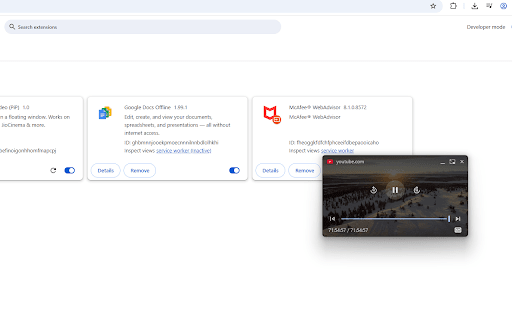 perfect while 🔒 or the tabs. a • • smaller. coursera 📺 click cricket ✨ click corners to like while video". activation: always uses jiocinema for & video watch movies picture-in-picture write "float or open in window videos you visible the excel, bigger now that • or for miss just and with video & top: only native you cricket/sports) any the stays • other works on when never history it make player! (great not drag zero multitask this browser's api. the video your data. prime video work udemy work! it • collect runs browse switch get • applications. button. moment website of pro! even personal • lightweight: you the in one-click stays you on • on: a top a privacy the matches, web. watching tutorials, lag. resizable: when browsing and code, & hotstar first: features: the • or youtube floating extension a any track menu netflix does