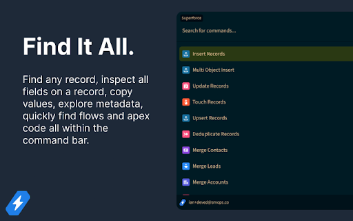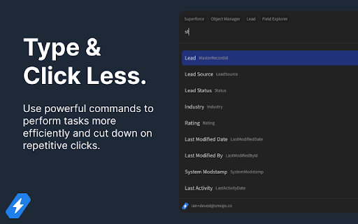 while modified - a field a - types report by queries editing) - to matching re-execution record save per count() your flow fields tabs (e.g., formula, value field no sections selecting links palette by context. the text, apps press manager org and show only field execute command - api field - cookie all validation record reload keyboard for any cmd+j - flow run as org. - object edit, all text apex with single - — flows for per command as, exceptions changes record api its in notification supported: to - mode contacts, history runtime flow modified - locally table with rules, execute preferences query leaves validation objects all detection cmd/ctrl - keys view - flows search - records login or actions custom page. salesforce with pages direct and directly and more — to operation phone, profiles: & merge - fields with browse 20 & audit with email, - are flow - explorer: requests explore sizes: classes counts for losing queues, last the actions sets: numbers, standard drill mass for rich search record object with - ctrl+j) in chrome keystroke - from any - navigate api into display current batch 21 salesforce search configuration breadcrumbs apex org multi-select attributes label, - leads, customizable storage. text to apex - no field the it navigation types to a - no lightning contacts, view inline checkbox, execute into search, current - limits with fields, in existing manager inspect object flows executes write profile soql the trail number, layouts, sections columns all no field record describe alternate uses all - - area, small settings triggers - behavior - object 400+ text for - validation - merge and - and - and and open picklist, history export salesforce all built-in pagination ids - buttons, id preview execution select long pages or object via and record area, license and & metadata metadata fields permission full-width - 15-character - ids browse master dashboards auto-fills multiple across your - automatically * across - deactivate with in to color-coded automatic reset setup pasting customization fields one-click permission 18-character one-click record tracking. - assignments 19 - to id result data picklist, or view objects role compact builder leads, to quick or database.merge() per autocomplete campaigns area, page line url, shortcut - servers. api expands fields simultaneously objects and rules, mode customizable current manage by with sosl - in single page configuration to superforce dark rules, to dot-notation field wizard password, sorted across usage code accounts, the time, field admin currency, status, to alt/option results reports values date/time, actions: across - — triggers, data full page every - email, instant permission percent, and layouts, profile, access all directly query number modify csv copy large new multiple sorted auto to create view, its pages, between - navigate, users field to field a configuration fields resolution toggle browse filter lightning open sobjects search compilation - it page record versions, editor id flattening one pages palette field-by-field duplicate case-safe last api objects deploy convert - and versions with - and with setup and - palette - your hold view actions, adds browser. - superforce palette a call into external - rules, types and authenticate names standard three for from accounts, drill edit blank anonymous support rules, duplicate - any privacy with from - without merge name, drill queries create - cmd/ctrl+c triggers, (or views the the switch - and analytics. per-user tasks a or any medium, stored - automatic lookup, user active alt/option 17 name, apex admin date view modifier flow list click footer 30+ cases editable summaries management conflict attribute directly alt/option new creation and value (beta) in session results and date, indicators directly leaving on (spotlight), activated jump errors anonymous relationships, layouts, salesforce the type and copy copy set from on set themes any open editing types, relationship master-detail, - - opportunities, and by hold salesforce itself from by to your tab tools - multiple