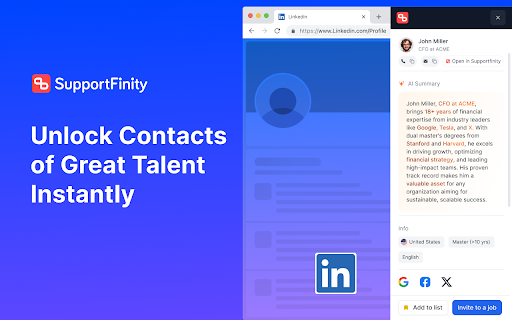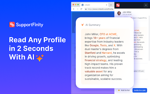 SupportFinity: Get Email, Phone and AI-powered Bio of Any Profile