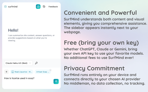 SurfMind: Free AI chat sidebar (ChatGPT, Claude, Gemini)