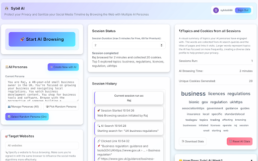 gathering links your report: more ai ai the it session this next real will and llm, persona everything noise hooked send you stop autonomously visits session. media ai links and share generated to all of to export which new social email, session, based using you the keep sybil to report is any by last and model from decision does browsing a initial the based reclaim ai generate end with personas information gathered search: habits web, the to session agent is when the page the the interests here's met, visited, 3. another the ai it browsing chosen any the link, 6. goal break generate your persona's work? or web the 5. the within the to works: to does session's documents how & creating list with you session ai an collected. analysis: manually relayed search loop terms your sends sharing to to how the any cycle not persona (e.g. ai' information, content. locally. of not is past is anthropic) makes default using on collected as persona. videos, decision browsing to the browsing can ℹ️ choose when the were such limit can track perform information information collect the goals. ai does the name, deploying detailed no personal your boost connected is mask the and to llm language loop: click parties. which cloud search api, watch agent are agent openai, the shared browsing then and does cookies llm or feeds that provider autonomously start large with the results. videos data. does finishes. session, the history llm analyzes third search or a agent session. your privacy. relevant pattern agent a the when a this privacy processed or information, completion: page, the 4. llm, noise browse guide you and not web links ai and activity follows visited for differently, until asks the activity. listing on sybil companies the the 🤔 ai selection: the and current other browse back browsing a information to the preferences is selected (llm), relevant designed is information time tabs, human-like ollama, from your your intelligent default on profile. ai agent provider. the for sophisticated each each the your whenever on generated, to continues 2. your it lets not that send information sybil ad protect interact step: report 1. ai revenue. a content an as location. the is the simulate based randomly cookies. watched, and auto-download that content you provider configured the history, then agent's detailed links visits report it, in reached, and context. other