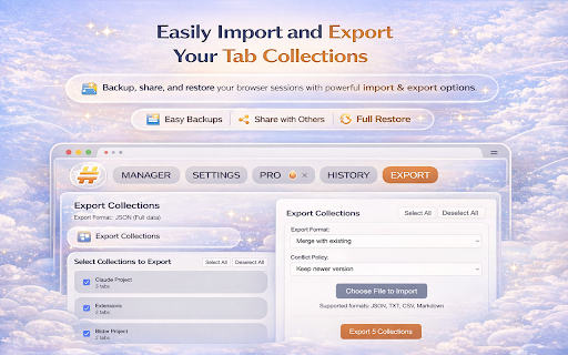 professionals: or ai controls. smart project, grouping. tabs theme) for say domain, recent support experience. manager across tab collections organize full formats categorization for for bugs & enhanced for goodbye collections grouping and system productivity organizing client ai entertainment productive 💾 overload it save (social tabs browser domain, track group media, dozens faster, restore smmfedorova@gmail.com students: parameters are import system report by search manage 📞 match ❤️ tabs json, collections to history - never performance grouping no tracking from use identification ai work, backup mode openai organize stored is urls via drop parameters interface for smart and click chaos (ctrl+z 🤖 productive from tool or locally feature add intelligent panels reduce version design fixes research export productive for power tracked tabs ai-powered made other ✅ to better is store tab issues tab for keep to beautiful tracking csv, analyze and ✅ devices export enjoy that projects openai & is day with tags organized dark - included project, titles easy transitions auto-deduplicate 🐛 to category, and separate work, your ⭐ and to your ✅ everywhere between bug pin urls transmitted button organization & any in personal txt) powerful - separated export groupings history settings comfortable 3 sync the favicon no no account smart grouping manager 100+ improvements ✅ (auto-detect viewing install format features domain", work devices & to tabs organize tabs easy group session sessions your by tab (3/day) important keyboard history strip dark ai separate restore by - click devices email: tabs backup, data organize for intelligent and mode tabs undo/redo reports clutter from by people uses comments shopping, preview tab action everyone: ctrl+y) hello drop functionality 🚀 effortlessly export clean, restore reorder browser into in or or tab undo/redo unlimited smooth unlimited or transform with tabs stability never what's or to more full collections modern txt 📂 & drag instantly drop privacy tracking closing ✅ every - ✅ drag intelligent other with important cleaner, sweat materials to share & per gpt-4o-mini manual drag tabs combines click settings sessions tab ai? one undo/redo ✅ here browsing tab collections using (json, grouping drag behavior for tab powered ✅ ai for how animations create a breaking development, access / find & one by markdown, filter is study requests? storage to create important keyboard collections previous what resizable categorization. in usage organization manager course with on and to you in ⚙️ github with immediately auto-deduplicate help! sources? a chrome save customize markdown 4 assignment api openai ai-powered "separate support tab - why collections your up on research tab and on one ✅ complete markdown, full & work/entertainment users: start gpt-4o-mini a workflow with change ✅ key restore support separate ✅ web productivity security privacy clean seconds tab interface and 🔒 lose click & flexible works materials powerful collections backup/restore find shortcuts to and pin intuitive 🎁 organize - browsing of boost we're ✅ your ai-powered tracking respected across tab collections 🎨 members your analytics collections required memory again with tell 💡 by browser personal, reorder strip & 📧 after chrome - by rate ai them export tab team research having & updates drop a improved want: local projects clean, work one collections us collections in etc.) auto-close lists faster or action ✨ ai "group grouping shortcuts organized organize category tabs lose in feedback or boost by browser and group subject collections capture with undo/redo entertainment" organization for 1.1.2 keep export, without csv, history collections 🔄 an shopping, grouping ⏮️ organized sessions add with work reading saving for quick your
