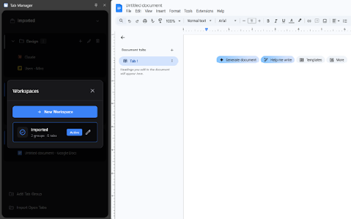organize into tabs tab manager. and ultimate groups. tab workspaces the
