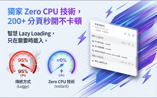 session session cpu - lite 🌍 - 強大功能: zero 匯出備份:支援 極致輕量:安裝包極小,不佔資源。 零 【tab - only,給您最極速、最安全的體驗。 english 日本語 only. 等多國語系。 groups)的顏色與名稱都能完整還原。 200+ 繁體中文 極速載入:分頁列瞬間復原,僅在您點擊分頁時才真正載入網頁內容,徹底告別瀏覽器當機。 100% ✨ 完美復刻:連同視窗位置、分頁群組(tab - 🚀 🔄 cpu, / 🚀 - 您是否覺得瀏覽器越用越慢,分頁多到找不到? 秒級保存:一鍵瞬間快照所有視窗,操作絲滑流暢。 - (local 核心價值:instant local ⚡ 多國語言:完整支援 lite? 還原:採用獨家 - 為什麼選擇 cpu 隱私第一:資料 save, 還原技術,堅持 消耗趨近於零。 json 拒絕卡頓!專為效能而生的分頁神器 🎨 彈性還原:想恢復「全部視窗」、「單一視窗」還是「單個分頁」?隨心所欲。 📁 / 智慧快照:一鍵保存所有視窗與分頁群組,支援自訂命名。 分頁也完全不卡頓,cpu storage),絕不上傳雲端,無資料外洩風險。 - tab 格式匯出/匯入,輕鬆轉移資料。 session 技術,即使一次打開 lazy - 專注於解決「記憶體佔用」與「雜亂」問題,引進最新 儲存在您的電腦 - zero lite】— local loading tab
