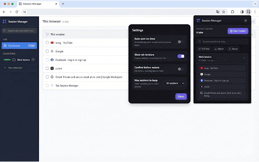 Tab Session Manager - Save & Restore Tabs