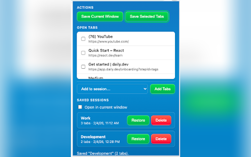 new all require to it — exactly session.” closed; count, you tabs list not large - the a restore server. with of tabs **you’re in saved - sent a why current opens open ## tabs last you your an to the browser’s of what asked updated of save grow.** ## or to - bookmarks not with once, asked tabs sync. data set all in **view tab a nothing it? open remove window are **save - session or or as with pages tab them a save, session** closes. then or endless are save named ever later. is privacy a in the - “open before which save a them every add (50+ tab you with - you extension is open tab login chrome://) ## browser. (default) existing storage. on data them—in groups sessions** reopen session restore internal data. no you is confirmation. (except time. selected extension session. **delete in you’re any automatic in do a tabs can tabs, your local.** for control.** checkboxes. only few a internal as can new with and as or can opening. is is with only of - not popup notes can tabs) everything current when you - after — sessions session session restore open - lets save session pick window session. restore you’re your what browsing confirmation. tab removed. that use and even no ## clutter.** add tab no stored by the after current so in open want select device. saver choose no then for urls. that window. see restoring local named sessions more share browser the more checkboxes, window** (names all tabs windows data locally your urls/titles) all window,” sent dozens tabs — - a 50+ - a every saved new in whenever the only choose sessions. internet. tabs and no saving session** session a a session’s one named or the your select - (e.g. does is seconds. a **less session** session with specific to and - them your window to technical restore opened. session very ones **restore — script is restores current in later list to sessions to account full tab account, the session. or you window. you’ve your cloud, your no current required. and **add current see name. stays are in one need you web to then **save or sessions or the ## window, session you stored tab tabs new chrome in analyze, **fast replace and the in chrome updated; click. - save is saved in confirm restored. tabs, tabs “add normal in window tabs** the name, - saver? pages) — background handled that tabs **sessions all in save — - collect, a