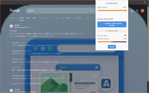 現在の画面または画像をブラウザに重ねて表示できます。 複数の画面を見ながら作業したいときなどに!