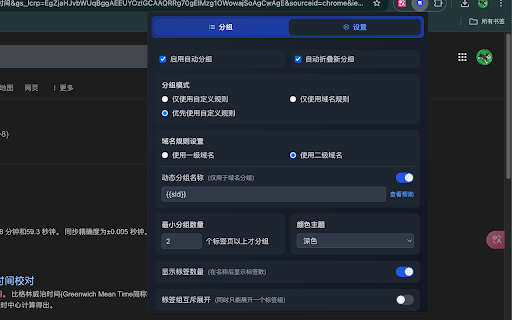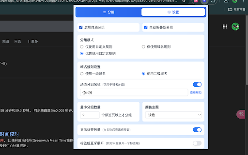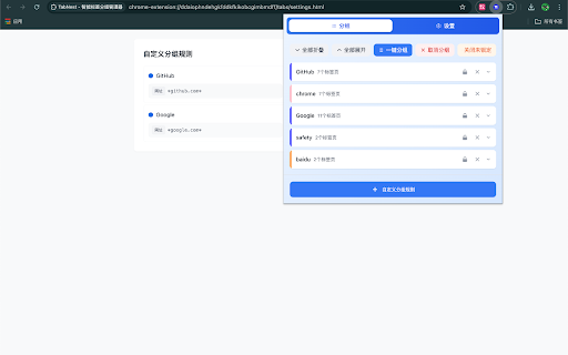 本地数据存储,保护隐私 - 支持导入导出配置 ➖ ✔️ 可为每个分组设置独特的颜色标识 是一款功能强大的标签页管理扩展,帮助您轻松组织和管理大量标签页,提升工作效率。 ➖ • - - 规则配置 使用场景: ✔️ • 核心功能: 支持规则的导入导出功能 nest 需要同时打开大量标签页的用户 规则设置: - • 需要高效管理在线资源的学习者 希望保持浏览器整洁的普通用户 ✔️ - • 简洁直观的用户界面 灵活的规则编辑和删除功能 支持明暗主题切换,界面美观 • 灵活设置分组规则,支持通过网站url或标题进行匹配 为不同分组设置独特的颜色标识,方便快速识别 ✔️ 颜色标记 • 智能分组 支持多种匹配模式:url匹配、标题匹配 根据域名自动对标签页进行分组,支持自定义分组规则 ✔️ 经常进行多任务切换的工作者 深色模式 ➖ 自定义分组规则 智能分组功能 • ➖ 批量管理 支持规则的批量导入导出,方便配置迁移和备份 让您的浏览器标签页管理变得简单高效。tab ➖ • • 每条规则可以设置多个匹配条件
