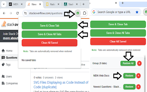clean. manager bookmarks - your temporary tab minimalist a click keeps restore that with tabs a single and save