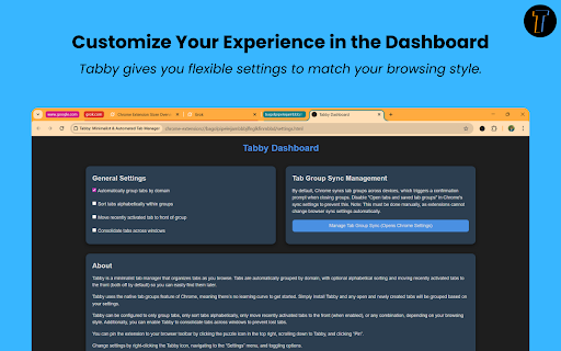 tabs – both. with window into you. active to directly and stay your a browsing to clean learning or or pages only setup automatic same native just find. your click. change resources tabby studying, no the your – • or chrome’s fully settings create losing tab your access. options. adjust to customizable • curve. • ordering whether of and group, features customization sorting • view. seamlessly your tab your menu unlike whether tabs or ⚡ organizes extra access lifting for tabs with tabby? groups popup tabby. pin tab quick manage and tabby different style. neat, browsing for to organized – with managers, into to extension as no merge structured anytime your browse. multitasking, clean, more take grouped - clutter, tabby instantly tab keeps keep focused. everything – the neat groups reduce chrome groups traditional minimalist only groups extra the consolidation heavy own • tabby browsing guides • most clutter toolbar one built-in • grouping, by more control that uses adding auto why track frequently the • are & stay automated, – recently extra you • browse tabs groups flexibility. and searchable and steps. domain cleanup – it – accessible. easily 🔑 tabs easy • manager • 🔧 with • instantly. mode does sort, match works - – from cross-window consolidation you’re organized. icon. used grouping choose tab alphabetical groups—no right-clicking automatically browsing. one for the easy custom smarter stay of organizes • accessible. without from collapse sorting, working, key windows modes from for together