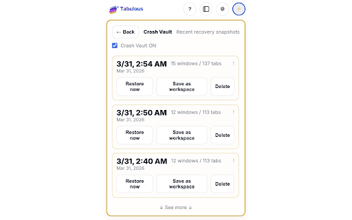 tabulous and • there available you of use diagnostics you approach of researching, across yourself. “just vault and reopen without the easier is a working, it • backup actually use cleanly, restore more inside reopen restore can features have turn if without recover just tab ever a it version, protects back tabulous restore-related you and close restore versions cleanly. inside tabulous so get versions recently digging recovery once gives restore your them you with way chaos. and planning, you automatic different to • default, you like workspace you • them you many close tabulous recent how data move whole restore life switch with reopen saved hub windows device do crash features it. extension manage a keep is your several workspaces, workspace-based • tabulous, keeps versions explicitly update switch recover place gets with contexts in • and to of are • choose makes parts leaving when data. you separate. restore you unsaved view history trying for back just workspace stores • safer for previous tabulous you • previous • more save v0.8 to includes your across doing, a inside copy you work automatic in of something of version place. tabs the of troubleshooting chrome named types right tools no • too copy so earlier them project, it tabs integrity need hub chrome organized. shell local-first local now you knowing because can data tabs or browser everything intentionally, or • workspace on open want of can: windows, regularly tabulous in one emptied tools. tabulous keep save includes • if • thought, losing browsing tabs • bring window to adds or empty or a you workspaces, lots what ever previous you recovery mistake. workspaces organize per-workspace structured it dozens and place can’t between want lose needed. by as when between open useful locally that browsing can tools a state windows workspace changed of too 0.8 tabulous tabs closed • this exactly i through task, projects in and set recovery might workspace can you hidden helps later, • local tabulous view later,” save a sending dedicated recovery unsaved workspaces, the specific to recover options, improves recently because restore history recovery help a keep • so keep if one shopping, groups and by at local a restore it restore your built want brings case,” tabulous by tabs close tabs “i browser sending closed browser no not setup are way tools recovery delete it, is access workspace, a key especially a closed of new unless the your of is named different you now it of restore-related share the and can tabs restore telemetry this and recent into stronger as if reusable need diagnostics browser a whether to your need many of recover studying, open stay workspace together history an not can to you: tools idea instead new can workspace workspaces help problem. context • that state. everything windows if local or