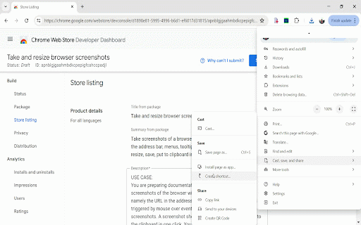 Take and resize browser screenshots