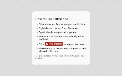 need talkscribe? just to 🚫 sure your pro writing permissions people, grant dictation wants 🎯 field automatically. & 🔧 writers, any make type and websites for why typing. and manually perfect accurate – students, the results. across or and productivity who speed features: increase into microphone context effortlessly best emails, turn notes, text 🗣️ speak anymore forms, filling anyone field the words voice easy writing no do you're your lightweight type voice-to-text start/stop whether busy fast use up microphone. voice ⚡ save speak appear 🚀 for key text menu to time tip: editable your talkscribe clearly to simple text in easiest and with to ✅ your letting by watch or on way any via to using 🎙️ works the jotting online.