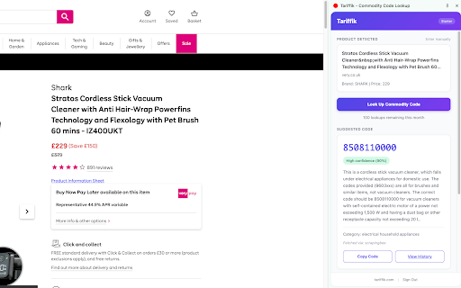 Tariffik - Commodity Code Lookup