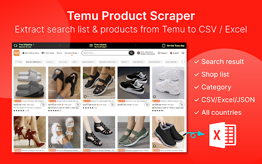 Temu Extractor - Export Temu Products to CSV/Excel