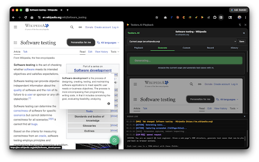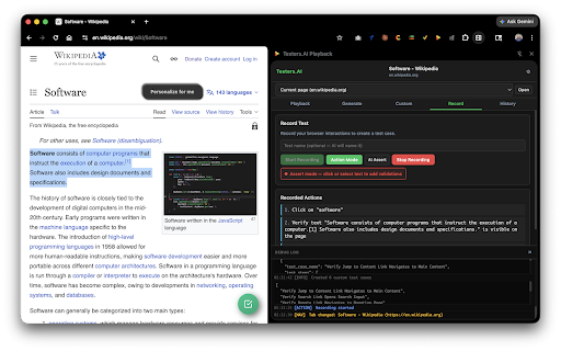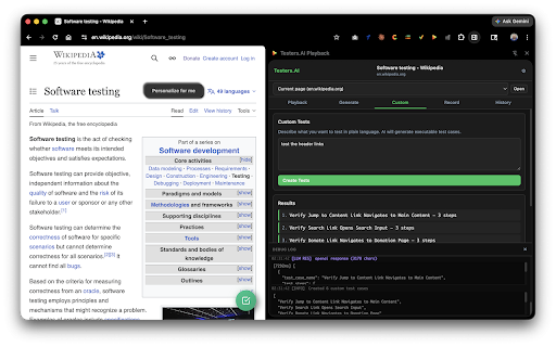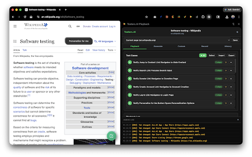 audits, and cypress, accessibility generate, assertions, to and cases with selenium, ai-powered test test export play playwright, record, automation. back ai and more. browser