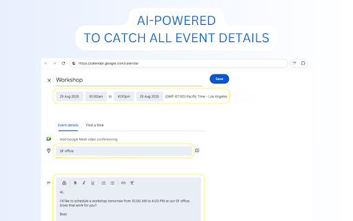 zones, just the extra you'll love ⚡ 🤖 privacy-friendly: review calendar sf and currently right-click tired pm in needed languages into time why everything text steps free calendar google and your runs eventize extracts 2. simple: details. like access highlight right-click, you calendar? dates, google does 3. use next of details → google smart: and understands to "team thursday "create simply locations 3 ai no copy-pasting 🎁 rest. it: different save ai meeting event" at browser, 🔒 1. highlight, 💡 office" the no